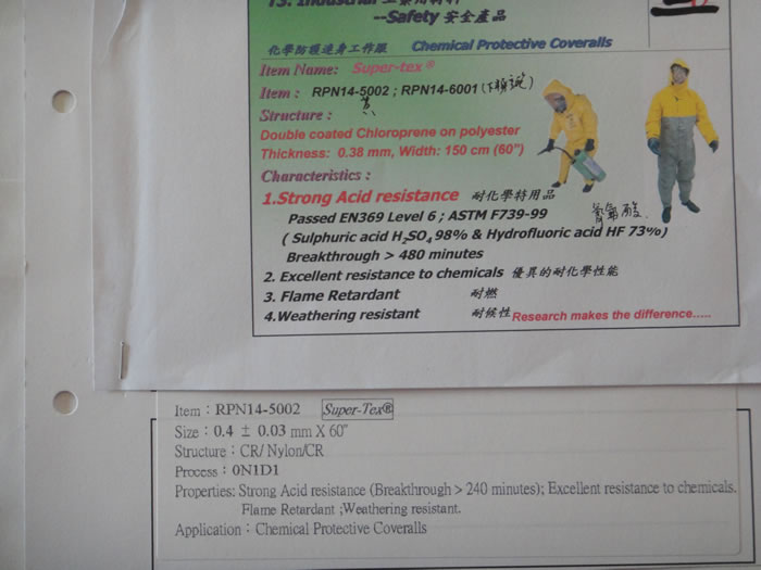 Hypalon面料强酸强碱防护服应用